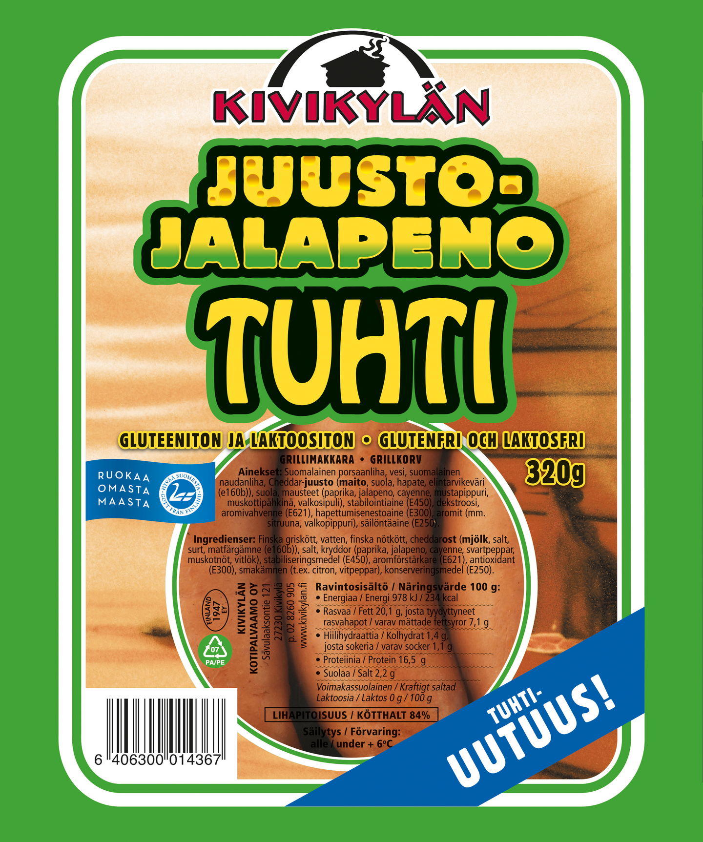 Kivikylän Juusto-jalapeno Tuhti grillimakkara 320g