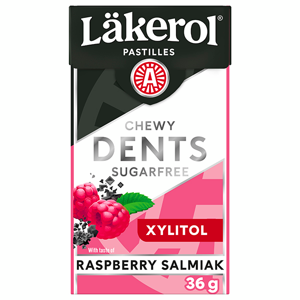 Läkerol Dents Raspberry Salmiak ksylitolipastilli 36g