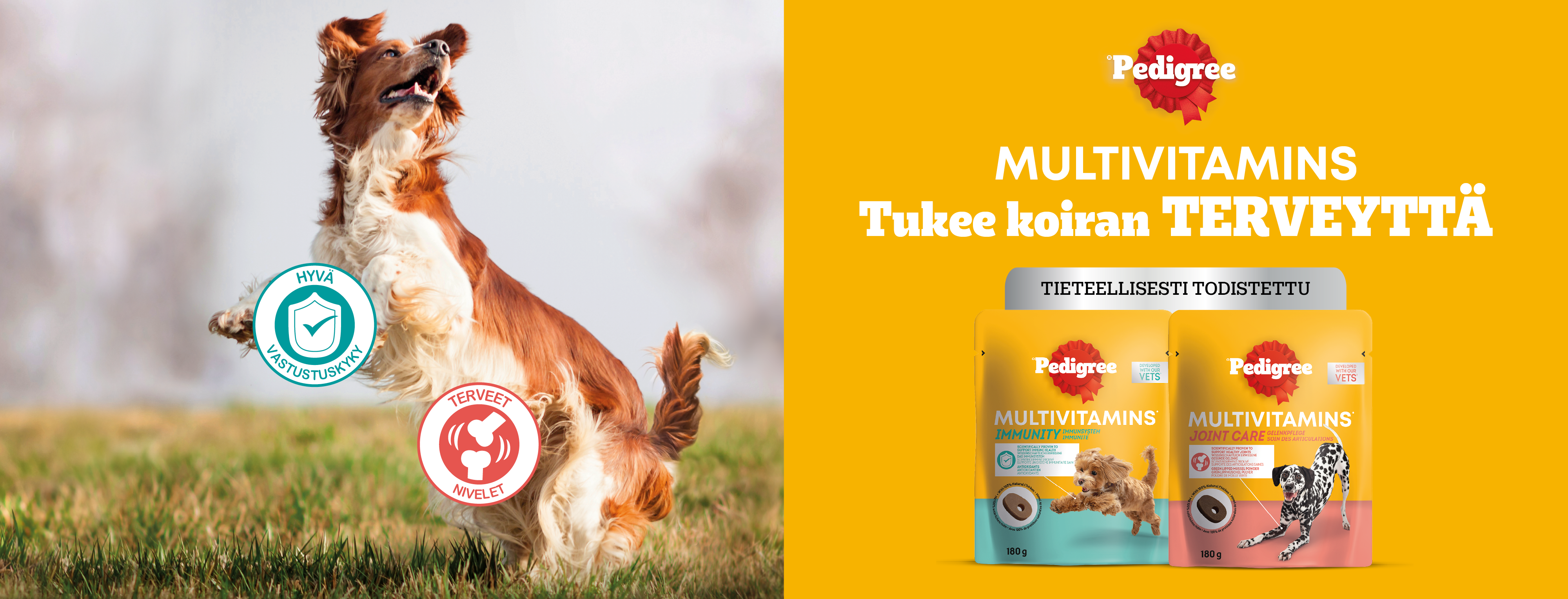 Pedigree tekee jatkuvaa työtä kehittääkseen korkealaatuisia ja ravitsevia tuotteita, joiden avulla kaikenrotuiset ja -ikäiset koirat pysyvät terveinä ja onnellisina.