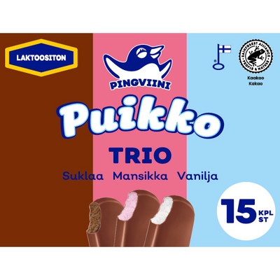 Pingviini Puikko laktoositon kermajäätelöpuikkolajitelma monipakkaus Trio 15x32g