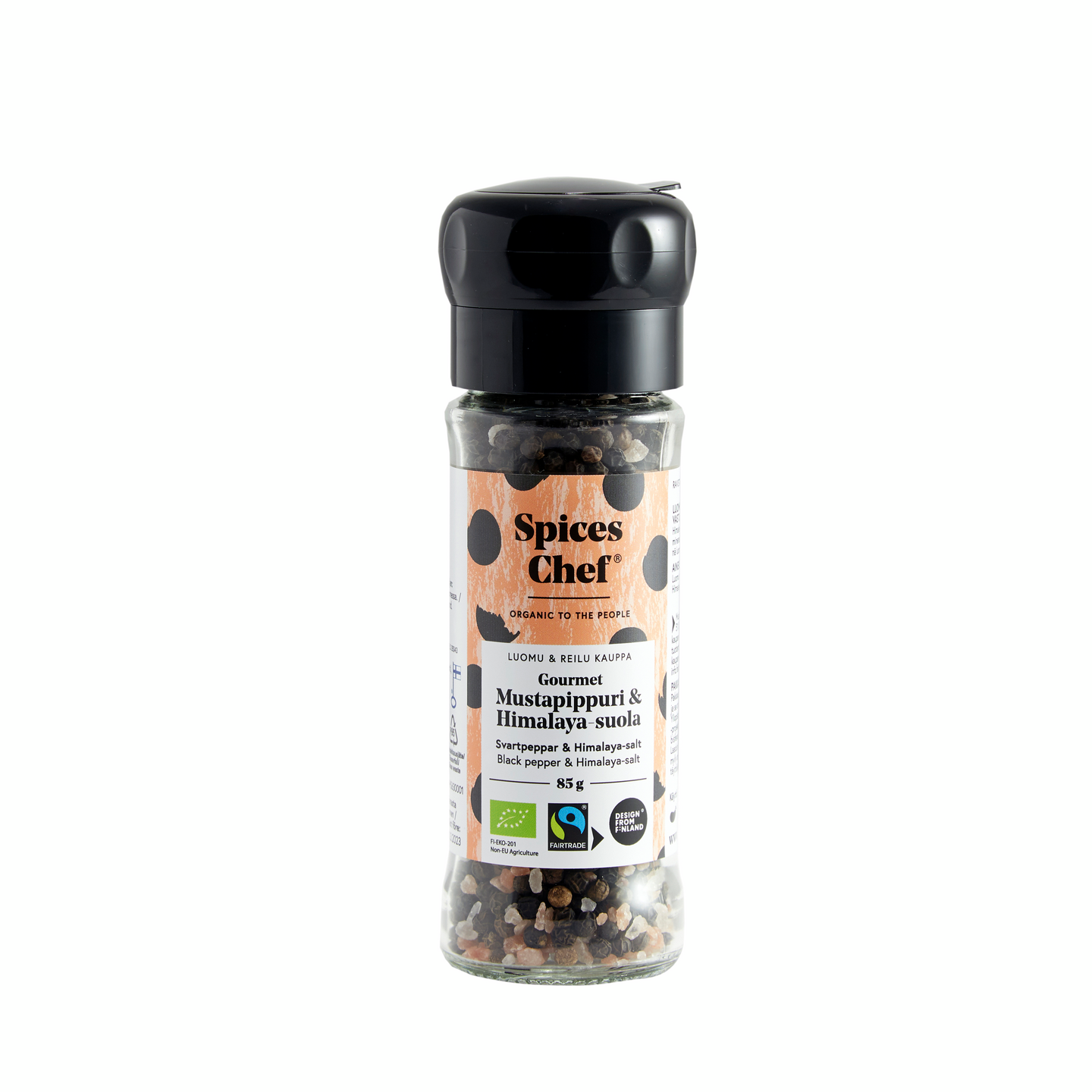 Spices Chef Luomu Gourmet Mustapippuri-Himalaya-Suola mylly 85g Reilu kauppa
