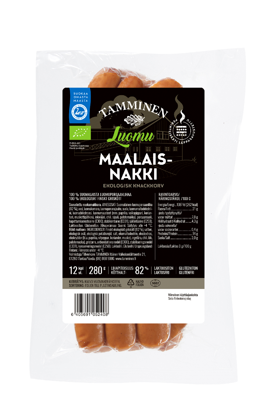 Tamminen maalaisnakki 12kpl 280g luonnonsuoli luomu