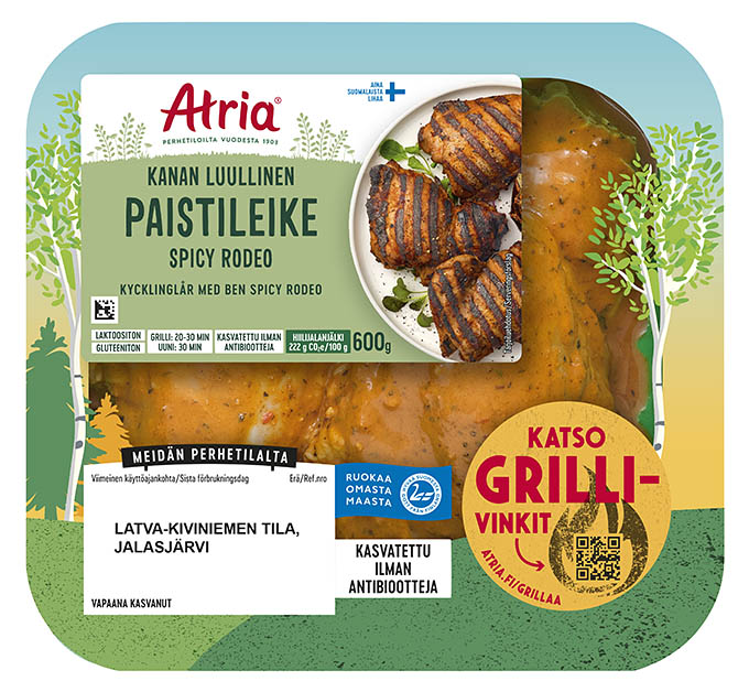 Atria Kanan Luullinen Paistileike Spicy Rodeo hurmaa mehevällä rakenteellaan ja chipotlen sekä savustetun paprikan intensiivisellä BBQ maulla. Luullinen paistileike viihtyy grillissä hieman pidempään, mutta palkitsee mehukkuudellaan ja aidolla grillifiiliksellään – täydellinen valinta hetkiin, jolloin grillaamiseen on aikaa ja halutaan nauttia kunnolla.
