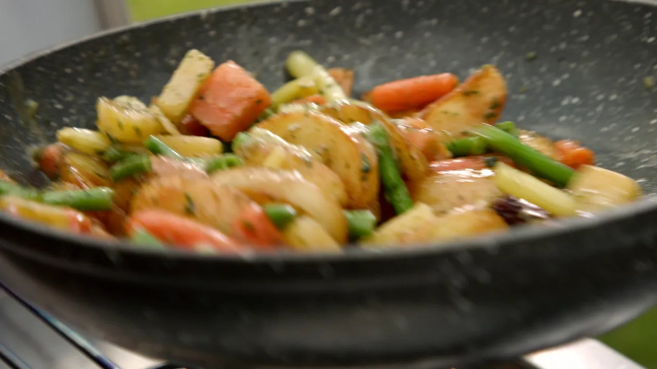 Voit valmistaa ruoan grillissä tai paistinpannussa.