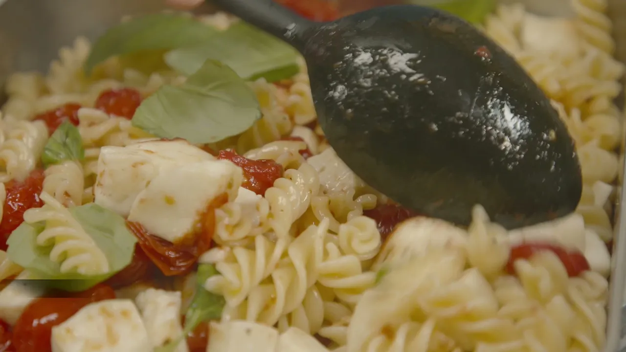 Paras pasta syntyy kun yhdistät uunissa paahdetut tomaatit, suolaisen halloumijuuston ja reilusti basilikaa. Helppo uunipasta pelastaa arjen kiireessä.