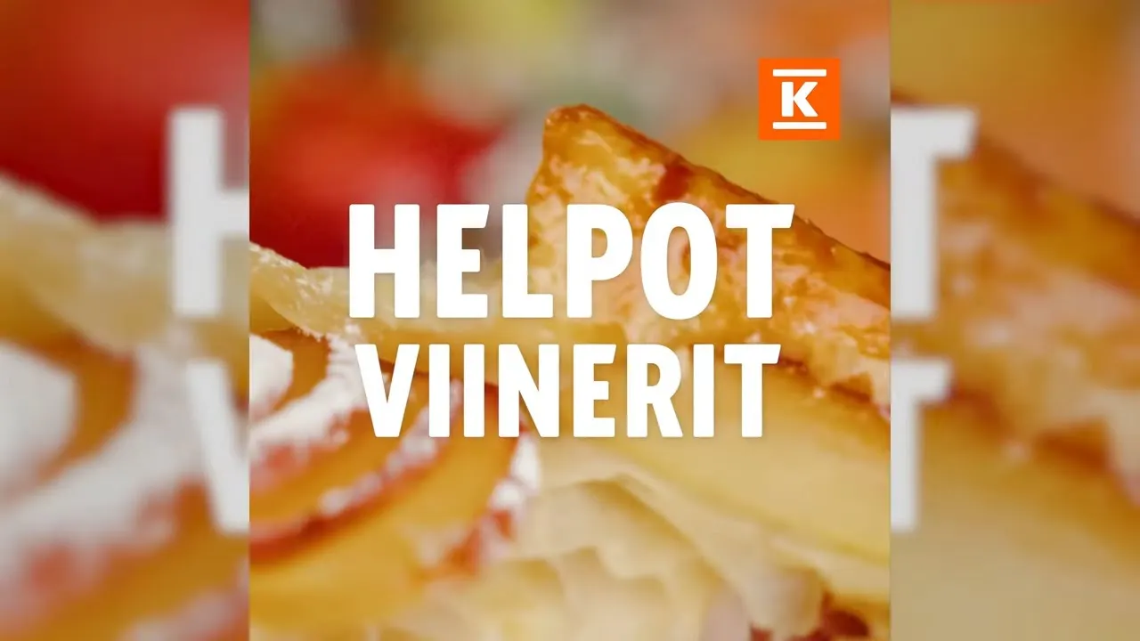 Viinerit: Sulatan taikina levyt, jaan ne kolmeen osaan, voitelen ne kananmunalla, laitan ne voideltu pinta alaspäin lautaselle, jossa raesokeria. Pellillä painan jokaiseen pienen syvennyksen, johon pursotan omena marmeladia ja hyvää tulee. Nopea vierasvara, joista lapsetkin pitää.