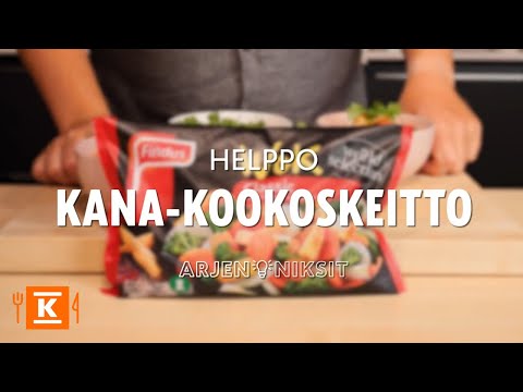 Helppo kana-kookoskeitto saa runsaasti makua punaisesta currytahnasta ja kookosmaidosta. Keitto valmistuu nopeasti, kun oikaiset pakastevihannesten avulla.