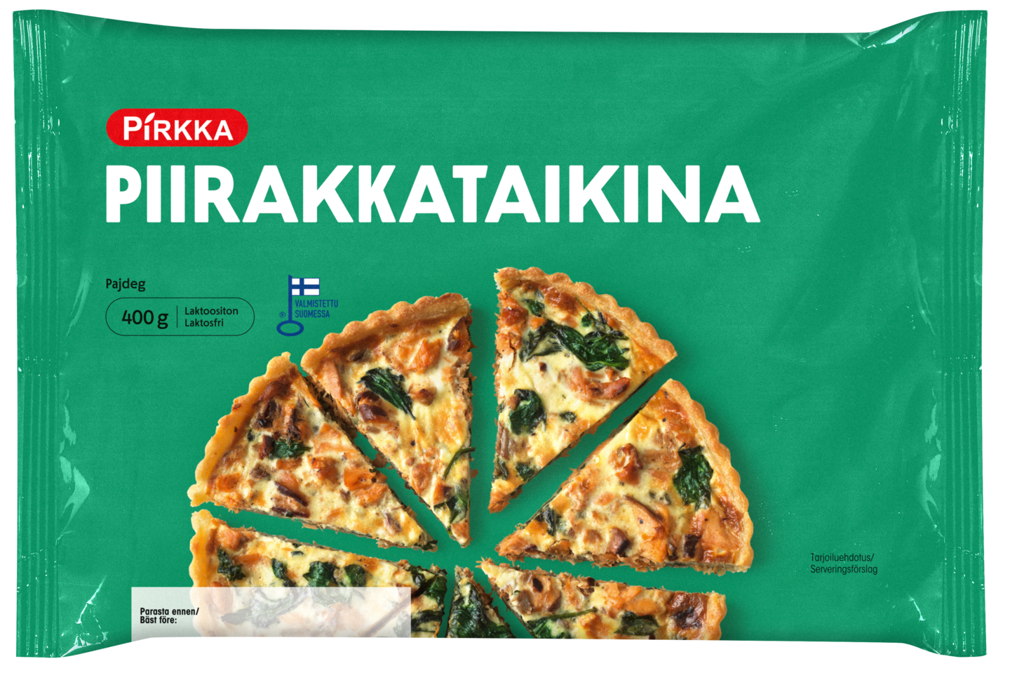 Paista piirakkaa 200 asteessa uunin alimmalla tasolla 25–30 minuuttia. (Peitä piirakan pinta foliolla paistamisen loppuvaiheessa, jos se tummuu liikaa.) Koristele tuoreilla yrteillä. Tarjoa piirakka hieman jäähtyneenä salaatin kanssa.
