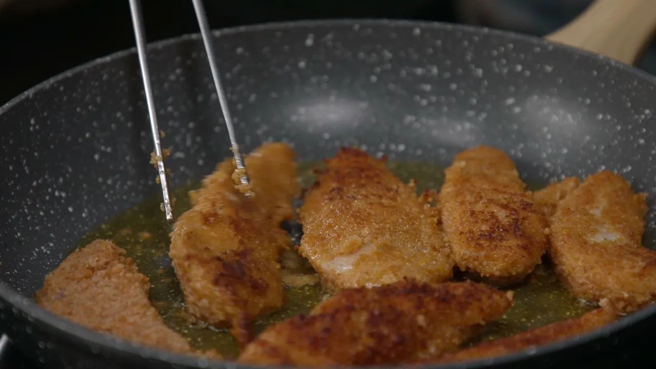 Kuumenna öljy pannussa ja paista paneroituja kanafileitä noin 5 minuuttia per puoli keskilämmöllä.