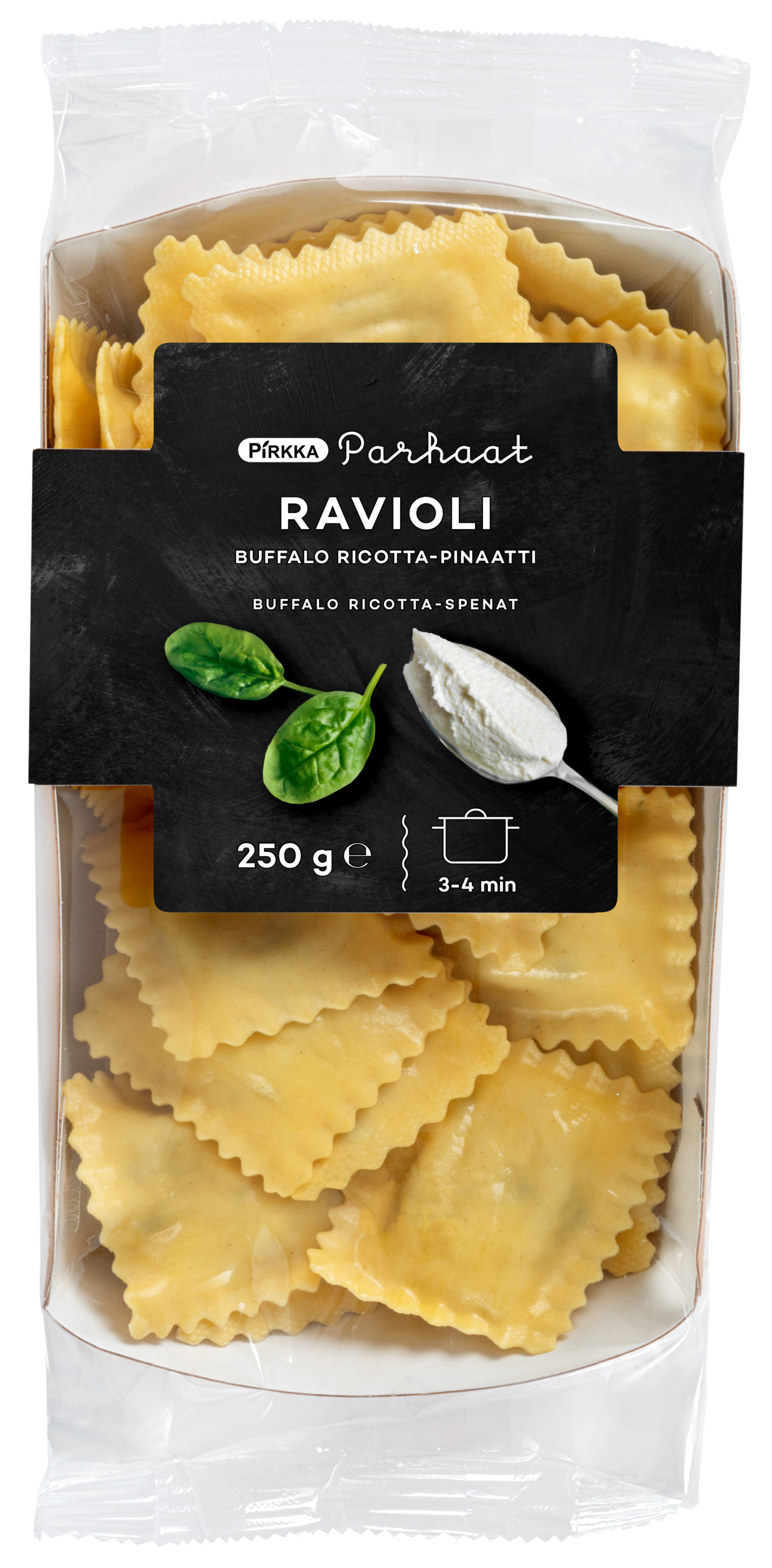 Keitä raviolit pakkauksen ohjeen mukaan. Kuumenna öljy paistokasarissa. Kuullota sipulit ja valkosipulit. Lisää kasariin porkkanat, sitten paprikat ja lopuksi kesäkurpitsat. Kuullota, kunnes kasvikset ovat sopivan pehmeitä, eli 3–5 minuuttia. Lisää kirsikkatomaatit, (paahdetut)pinjansiemenet ja basilika. Mausta suolalla ja pippurilla. Sekoita joukkoon valutetut raviolit.