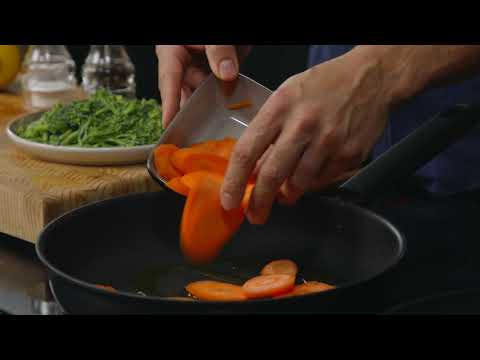 Leikkaa tarvittaessa varsiparsakaaleista päät pois. Leikkaa varret kolmeen osaan. Paista varsiparsakaaleja hetki öljyssä pannulla, ne saavat jäädä rapeiksi. Mausta suolalla.