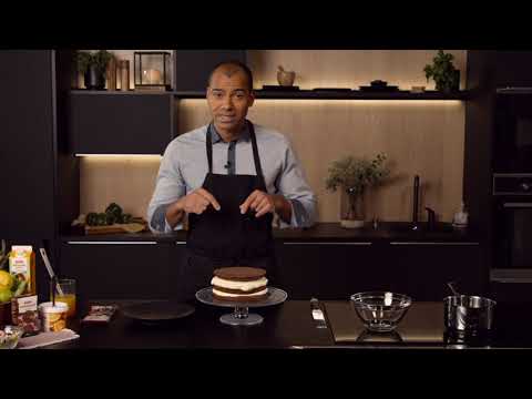Valmista kakkupohja. Voitele ja jauhota pienen irtopohjavuoan pohja (Ø 18 cm). Taita kaksi leivinpaperiarkkia kaksinkerroin. Laita arkit kiertämään vuoan sisäreunoja.