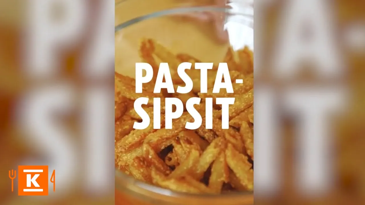 Paista 175-asteisessa uunissa kiertoilmalla noin 20 minuuttia, kunnes pastat ovat rapeita ja saaneet hieman väriä. Anna pastasipsien jäähtyä pellillä. Voit paistaa pastasipsit myös 200-asteisessa uunissa tasalämmöllä noin 30 minuuttia. Kaada jäähtyneet pastasipsit tarjoiluastiaan ja tarjoa dippikastikkeen kanssa.