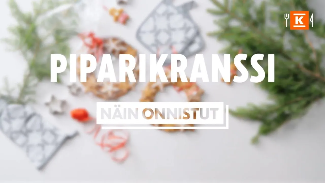 Kaunis piparkakkukranssi sopii syötäväksi lahjaksi tai kotiin seinäkoristeeksi. Piparikranssi valmistuu helposti kaupan piparitaikinasta ja itse tehdystä koristelupikeeristä.
