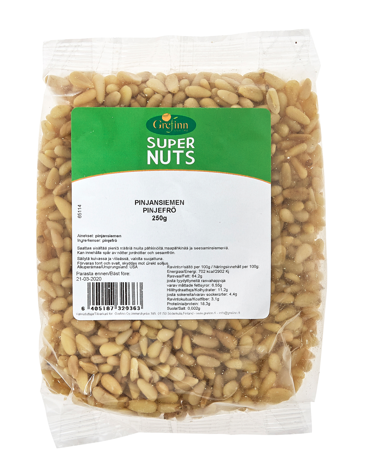 Paahda pinjansiemenet kuumalla pannulla ja siirrä sivuun odottamaan. Lämmitä porkkanasuikaleet pannulla öljyssä. Sekoita joukkoon kastike. Pyörittele seos nopeasti pannulla kunnes porkkanat ovat hieman pehmenneet. Ripottele pinnalle pinjansiemenet ja basilika.
