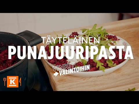 Sekoita punajuurisose pastan joukkoon ja murustele feta pastan päälle. Viimeistele rucolalla ja tarjoa heti.