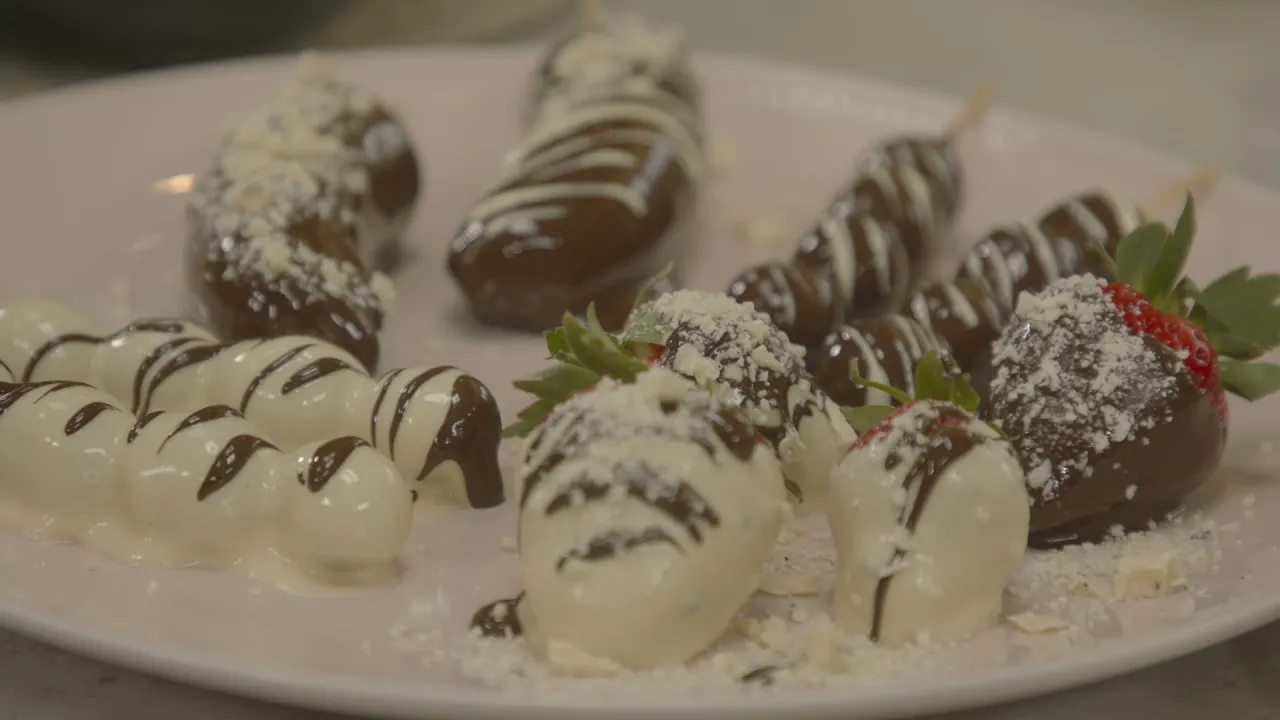 Upota hedelmät suklaaseen varrastikun avulla.