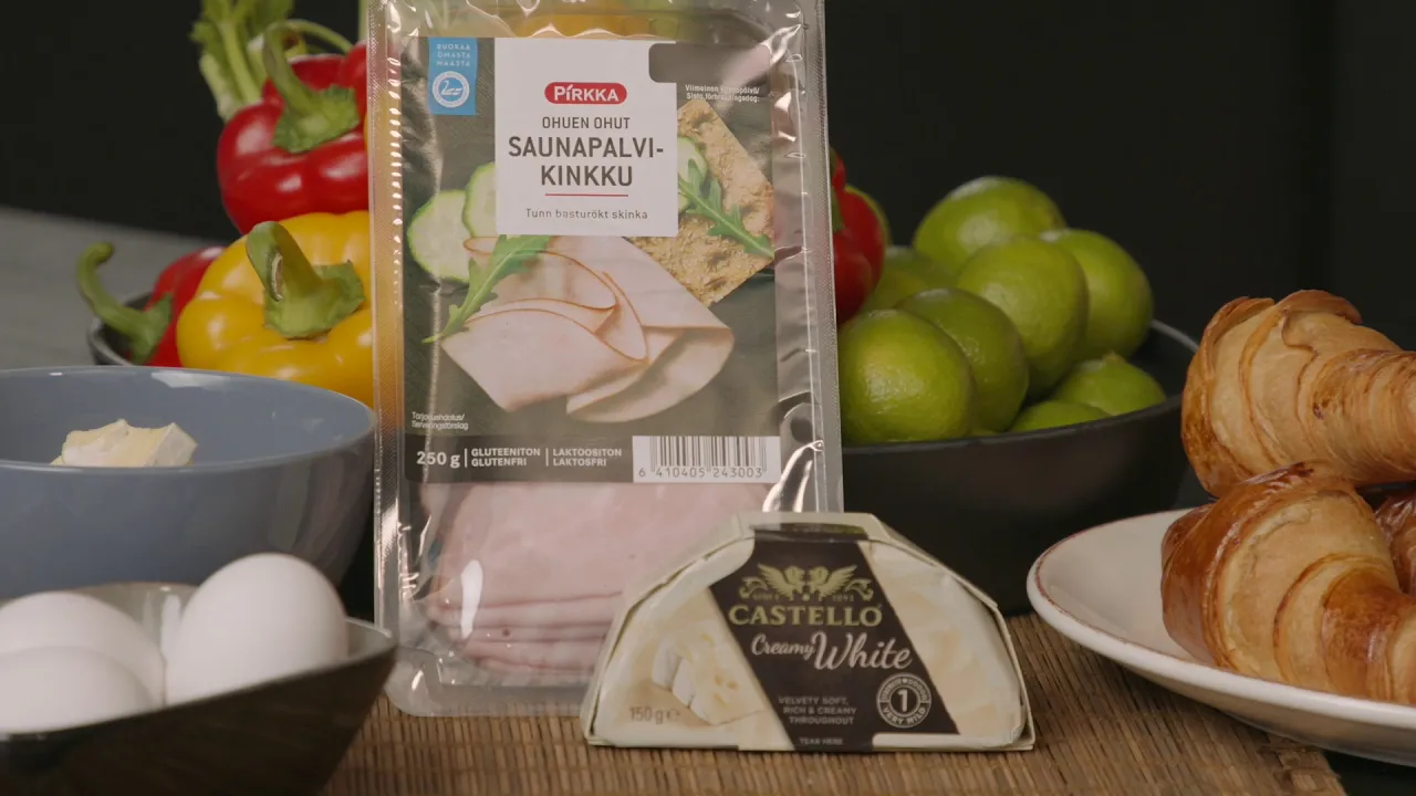 Täyteläinen valkohomejuusto ja suolainen kinkku tekevät suolaisesta croissantvuoasta brunssipöydän kuninkaan. Croissantvuoka sopii myös mainiosti iltapalaksi.